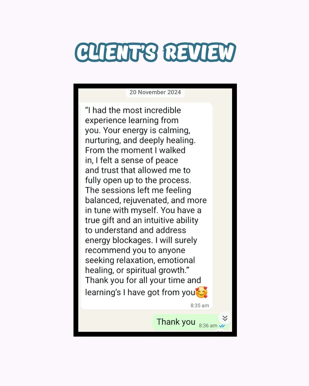 I have 10+ years of expertise in Reiki Healing (Level 1–3), Akashic Records, and Pendulum Healing.