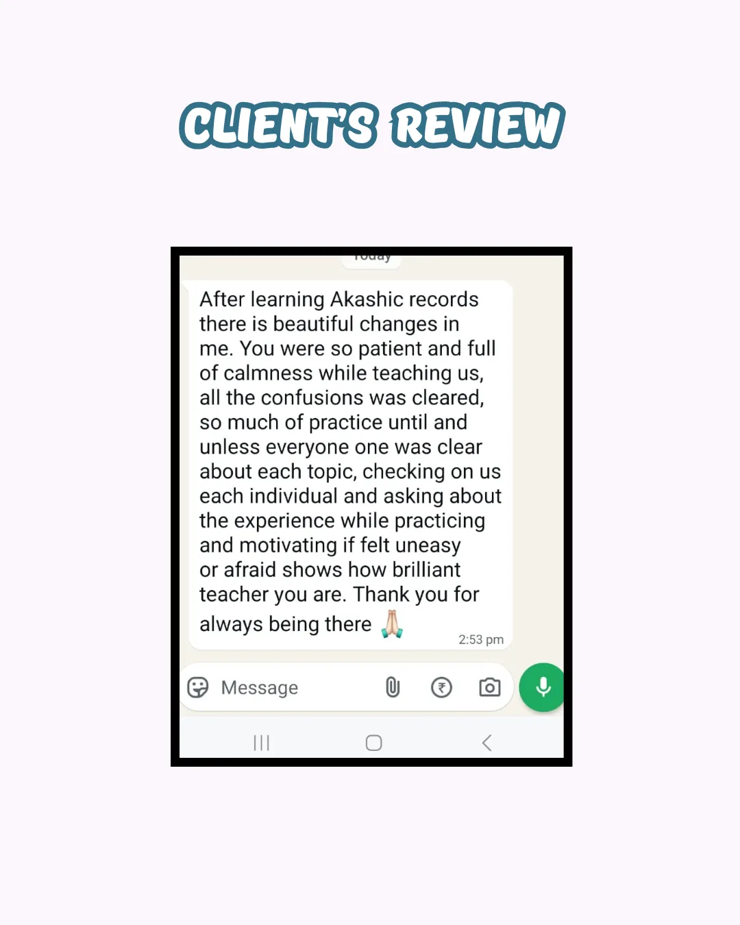 Part of the session includes understanding whether Reiki, Akashic Records, or Pendulum Healing is aligned with you — and whether it can become a purpose-led income source.